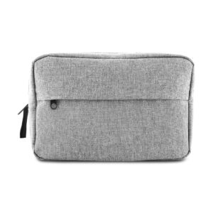 Nécessarie em tecido poliéster 300D, alça de mão e bolso externo com zíper.