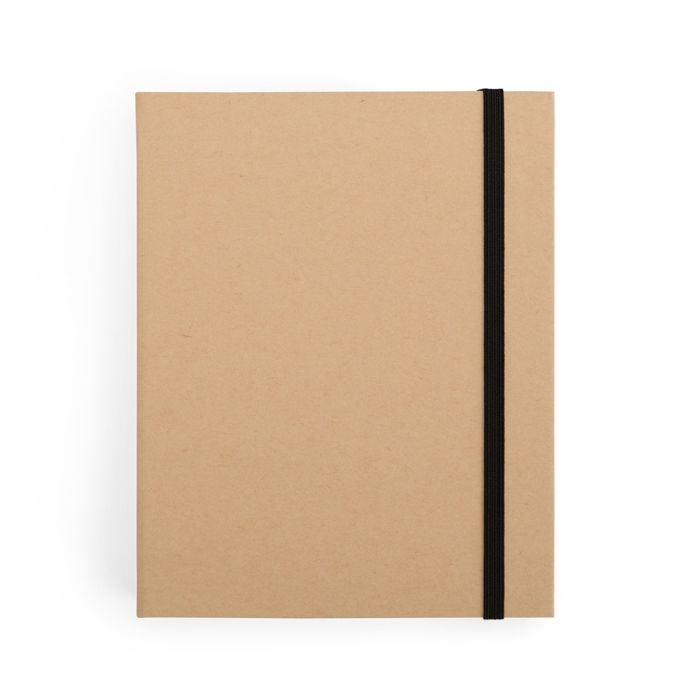 Produzido com capa dura em kraft, o bloco transmite uma imagem ecológica, elegante e profissional. Seu fechamento por elástico resistente garante mais segurança no transporte, evitando que as folhas se soltem ou amassem. Internamente, o bloco conta com aproximadamente 80 folhas de tonalidade marfim, sem pautas, proporcionando maior liberdade para anotações, desenhos, rascunhos ou planejamentos.