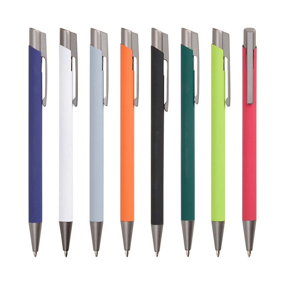 Caneta esferográfica de carga azul de 1.0mm, acionamento por clique e construção leve totalmente em metal, o que possibilita uma pegada suave para uma escrita mais precisa.
