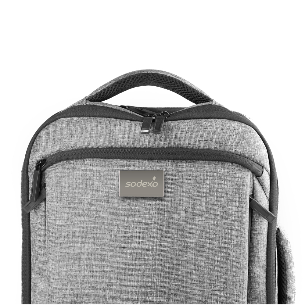 Placa em inox medindo 5x3cm, exclusiva para fixação em mochilas e malas, ideal para gravação a laser. Possui travas para fixação.