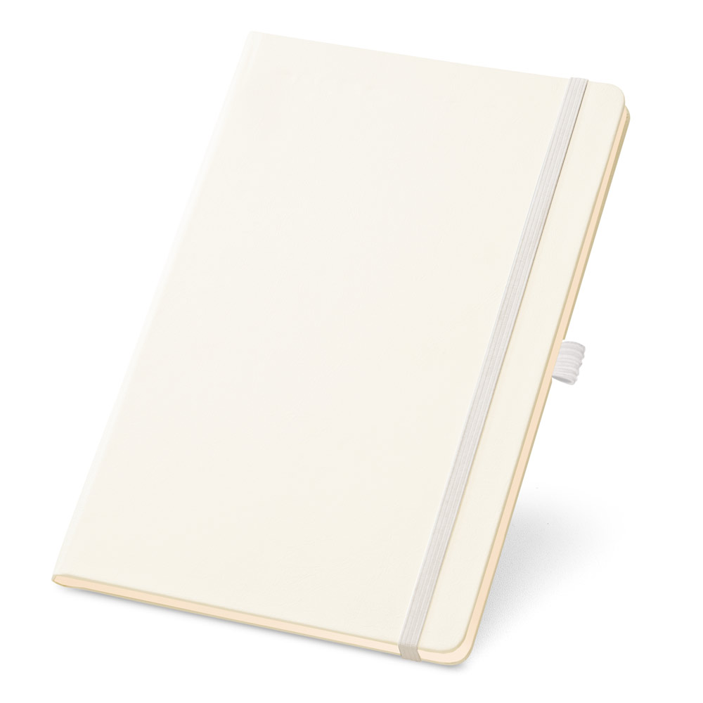 Caderno A5 com capa dura. Contém suporte para esferográfica, bolso interior e 80 folhas pautadas em cor marfim. 137 x 210 mm