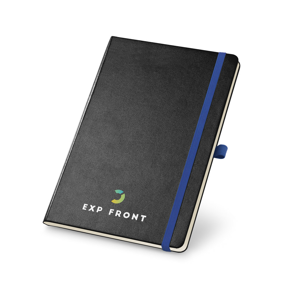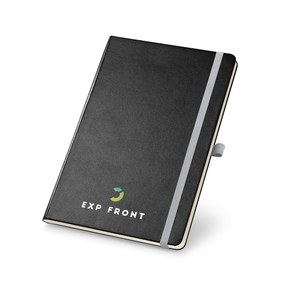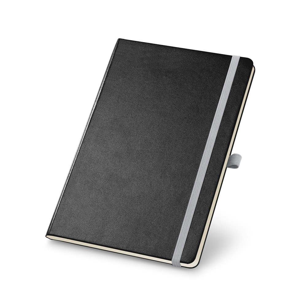 Caderno A5 com capa dura e 80 folhas não pautadas em cor marfim. Contém bolso interior e suporte para esferográfica (não inclusa). 137 x 210 mm