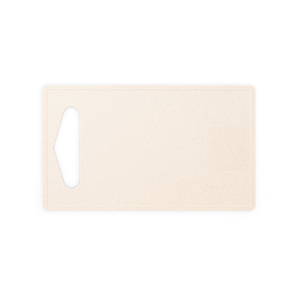 Tábua de corte em fibra de bambu (50%) e PP (50%). Contém um quadrado liso no fundo da tábua, adequado para a personalização. Food grade. 237 x 140 x 4 mm