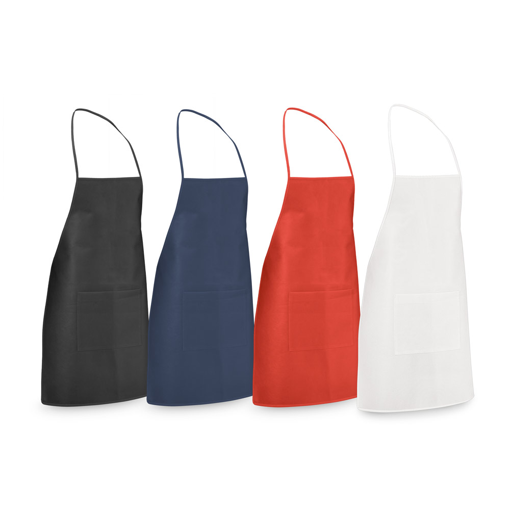 Avental em non-woven (80 g/m²) com 1 bolso frontal e fitas de ajuste. 490 x 685 mm | Bolso: 230 x 175 mm