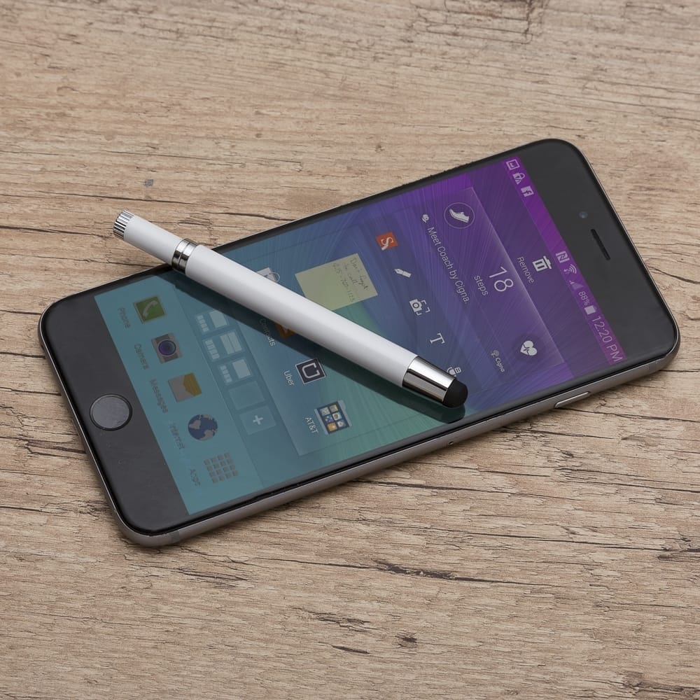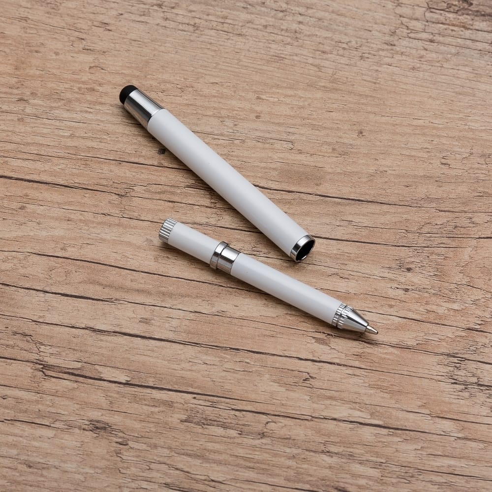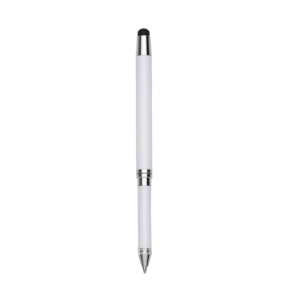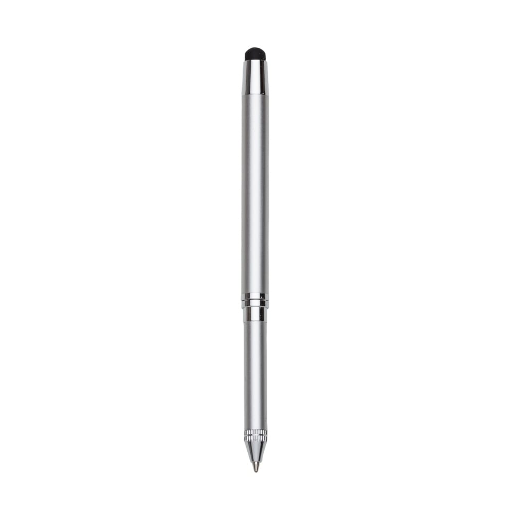 Caneta metal touch, inteira colorida com detalhes prata. Ponta superior com borracha touch e lado oposto basta puxar para utilizar a caneta.