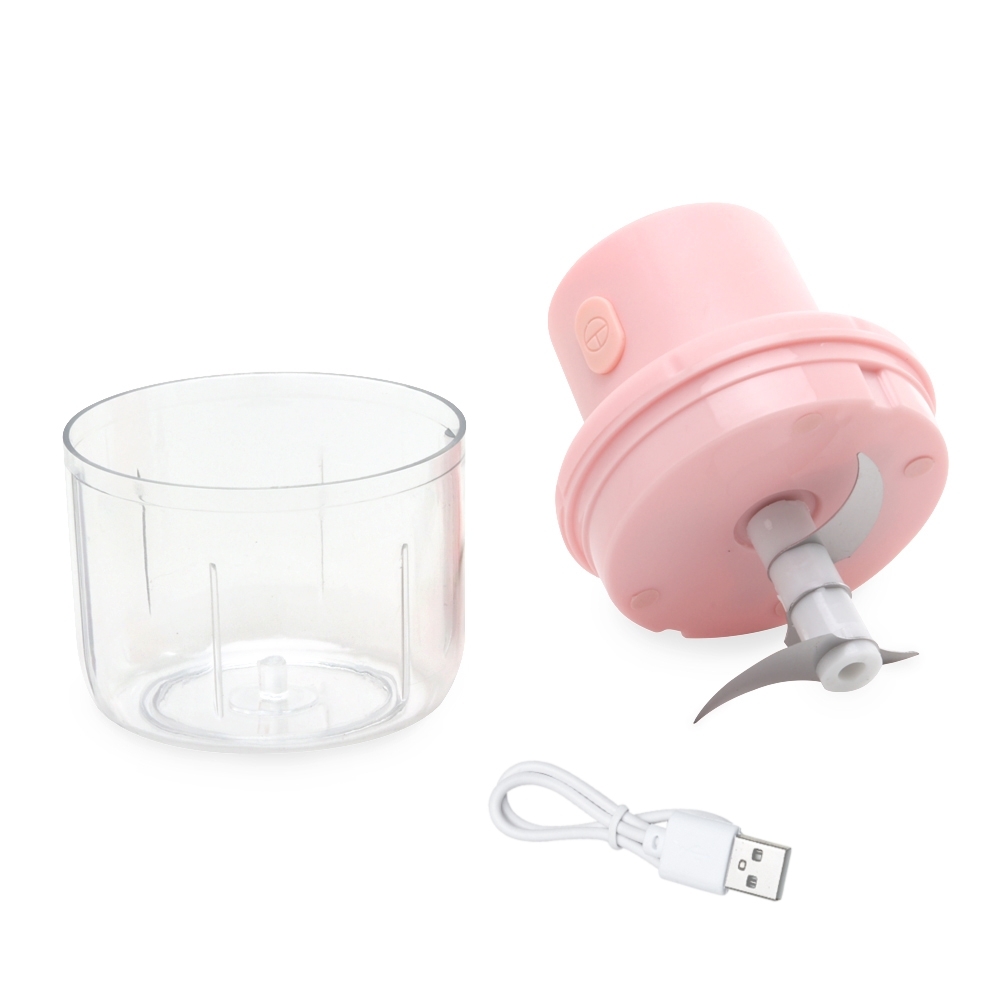 Processador de alimentos automático com lâminas em aço inoxidável. Material plástico, contém tampa com botão de acionamentoe acompanha cabo USB.
